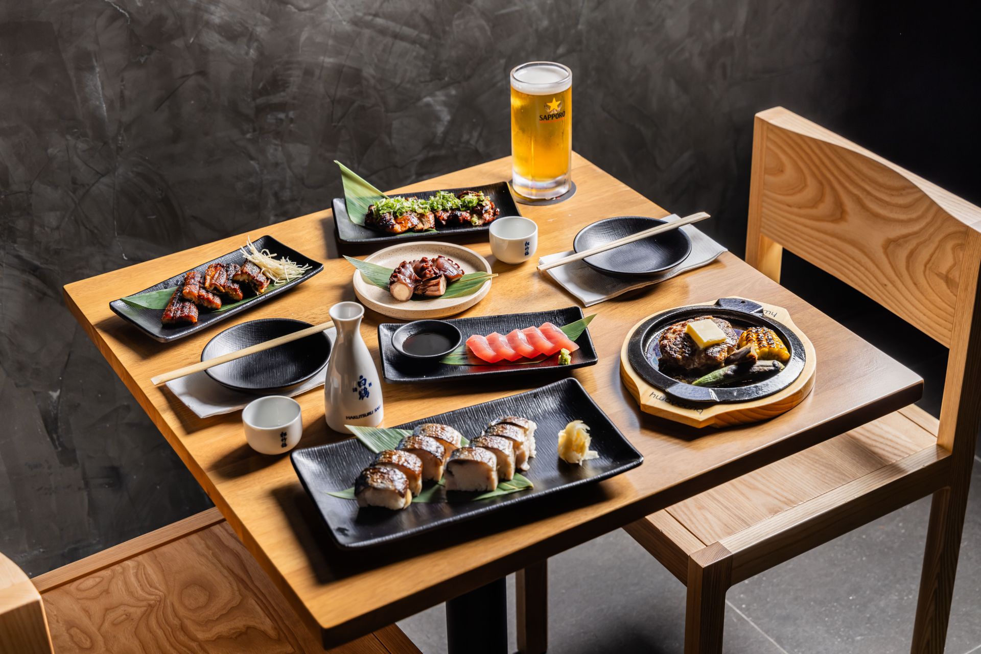 The menu features a standout selection of classic izakaya dishes, all made using premium ingredients and crafted with care. Guests can enjoy mouthwatering options such as grilled tuna, black angus sirloin, sake-steamed clams and Japanese-style hamburg steak. Every dish is prepared to showcase the delicate balance, flavour and presentation that Japanese cooking is known for.