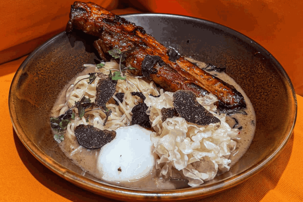 They're calling it "Luxury in a Bowl," and it features their signature house-made noodles piled high with premium wagyu steak, black truffle and sautéed mushrooms, shallots, nori, sesame seeds, and a perfect soft onsen egg. It's a rich, savory, and deeply satisfying dish that promises a unique truffle explosion in every bite!
