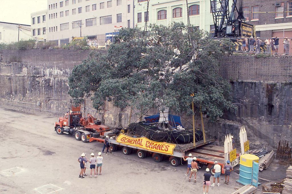 Fred’s life began humbly in the early 20th century, gracing the grounds of the Homebush Bay Abattoirs. The story goes that the legendary botanist Joseph Maiden himself might have planted him. But progress has a way of reshaping landscapes, and the abattoirs were demolished and its beautifully landscaped gardens incorporated into the Sydney Olympic Park. Thankfully, someone saw the value in this grand fig, and in 1987, Fred embarked on an epic journey via barge down the harbour and into Cockle Bay, making him possibly the first mature tree transplant in NSW history - talk about a VIP move!