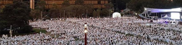 Le Dîner en Blanc is an elegant large-scale picnic from Paris that takes place in a secret location, always revealed at the very last minute. The global phenomena, which has been running since 1988, is now hosted in many major cities worldwide, always in the most spectacular of public spaces, as one of its main aims is to encourage people to enjoy their city’s public spaces in a creative, exciting new way. Tumbalong Park in Darling Harbour was chosen as the perfect scenic outdoor venue for 2019’s event held in November. Around 5,000 eager ticket holders, all dressed in white, flocked to Tumbalong Park for Sydney’s poshest picnic. They were rewarded with a memorable evening of dining and dancing, recalling the elegance of French high society. The magical event brought together people of diverse backgrounds to eat, engage and enjoy. Diners ate, drank and danced into the evening before cleaning up their tables and dining remains with respect for the use of such a special public space.