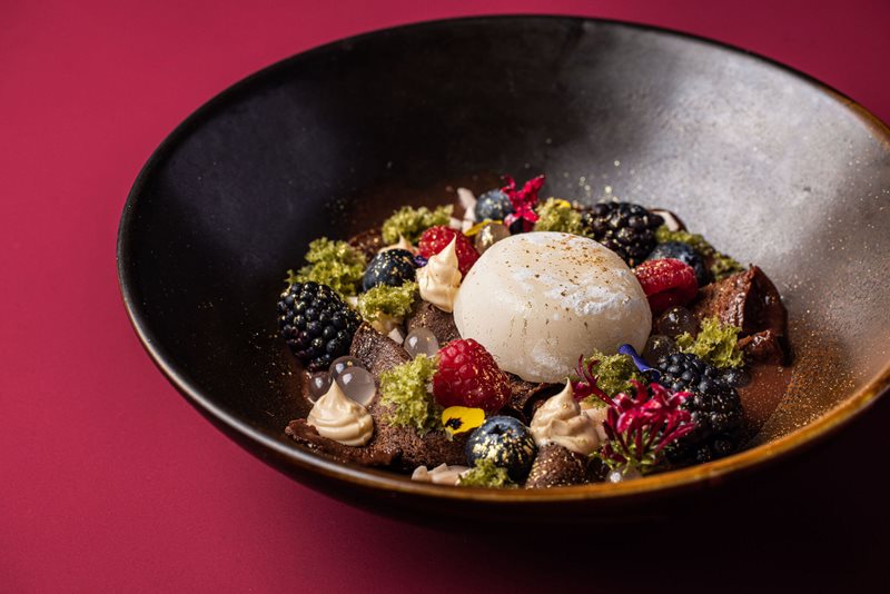 Auver presents a delightful cocoa crepe adorned with coconut jelly, drizzled in rich chocolate sauce, crowned with mochi ice cream, and sprinkled with vibrant berries. A symphony of flavours that will dance on your taste buds and add a dash of joy to your holiday celebrations.