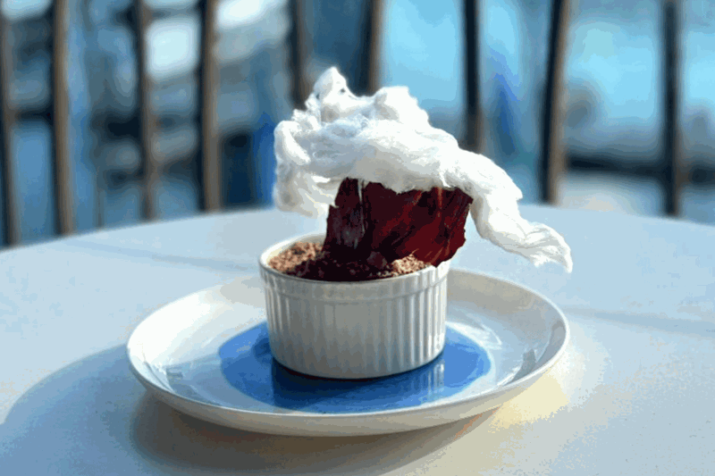 Indulge in an exclusive potted garden dessert while soaking in the panoramic views of Cockle Bay.