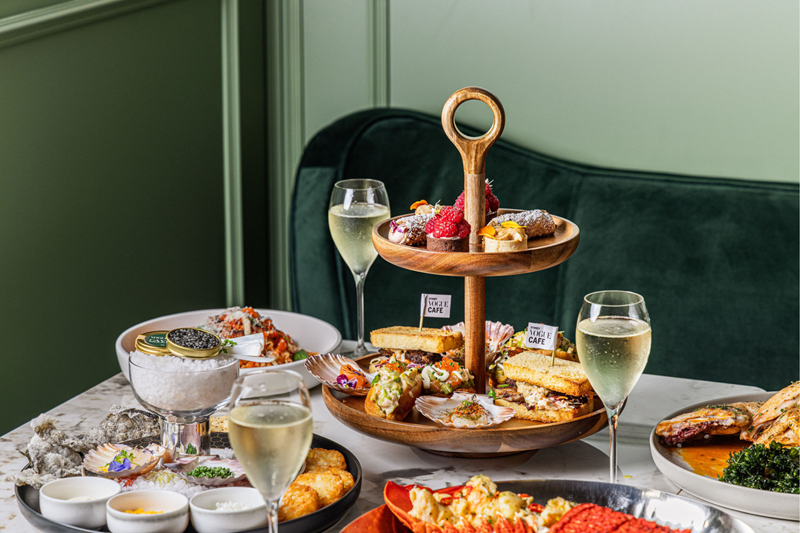 Enjoy High Tea, the Vogue way. Indulge in a decadent spread featuring an array of seafood delights, M9 Wagyu and delicate pastries, all impeccably crafted and presented.