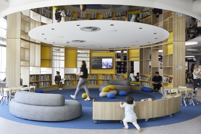 The Darling Square Library is an exciting hub for learning, innovation and creativity. Spanning over two floors of the unique spiral building it features indoor and outdoor terraces, a dedicated children’s area, free WiFi and public computers, plenty of study spaces and bookable meeting rooms.
