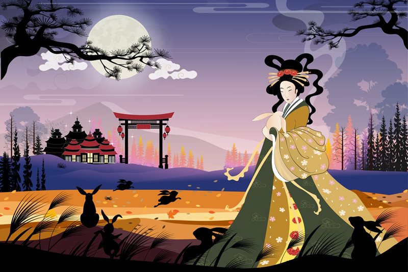 Long ago, the Jade Emperor lived in a palace in the sky with his ten mischievous sons who turned themselves into ten blazing suns. Their playful antics made the earth unbearably hot. To save the world, Houyi, a skilled archer, shot down nine of the suns, restoring balance and making him a hero. The Jade Emperor rewarded Houyi with a magical elixir of life from the Queen Mother of the West. However, when the elixir was threatened by an evil man, Chang’e, Houyi’s wife, drank it and floated to the moon, becoming the Moon Goddess. Legend has it that Chang’e lives with a jade rabbit, making the elixir of life. On a bright moonlit night, you might spot them and even the eternal woodcutter Wu Gang, who was condemned to chop a giant tree on the moon forever.